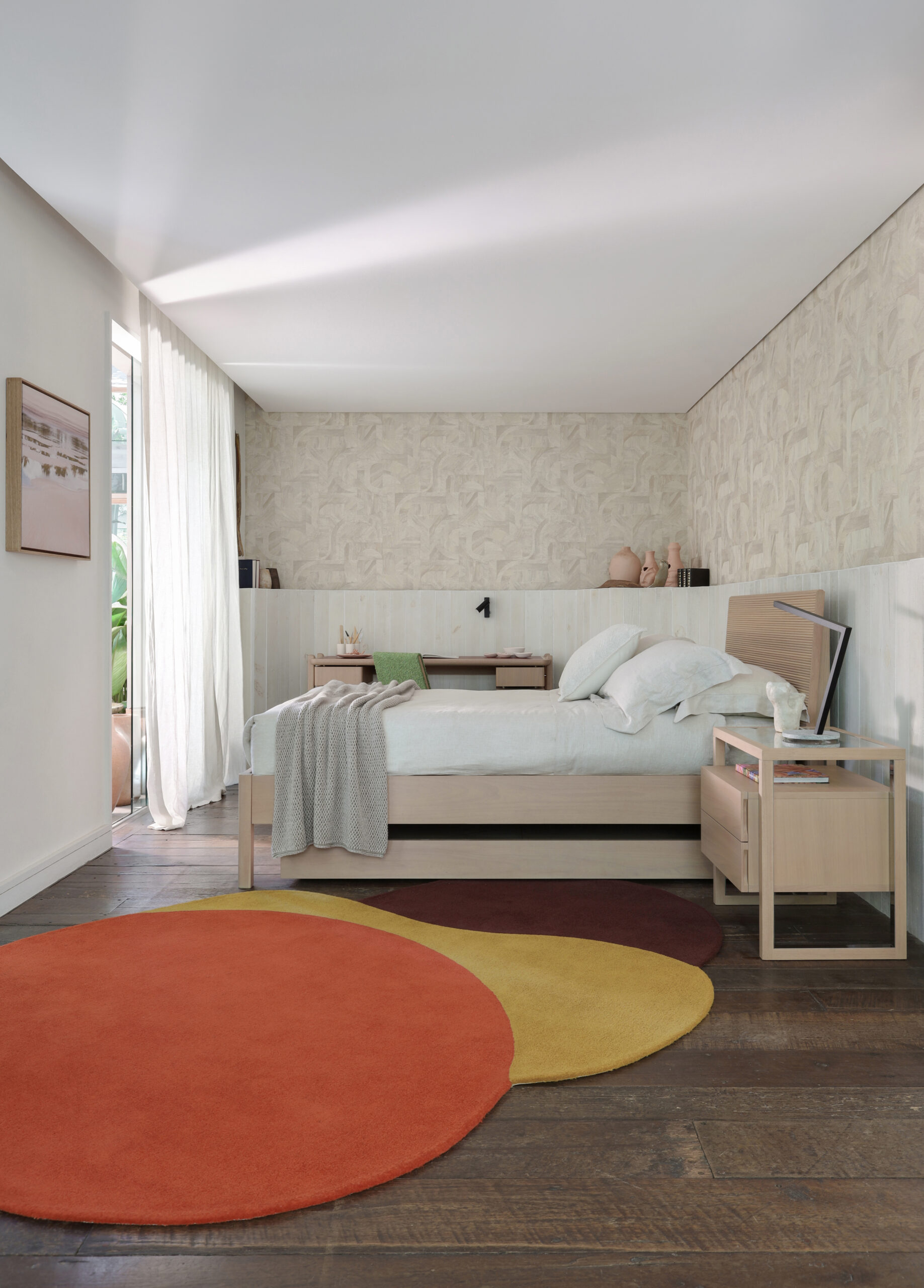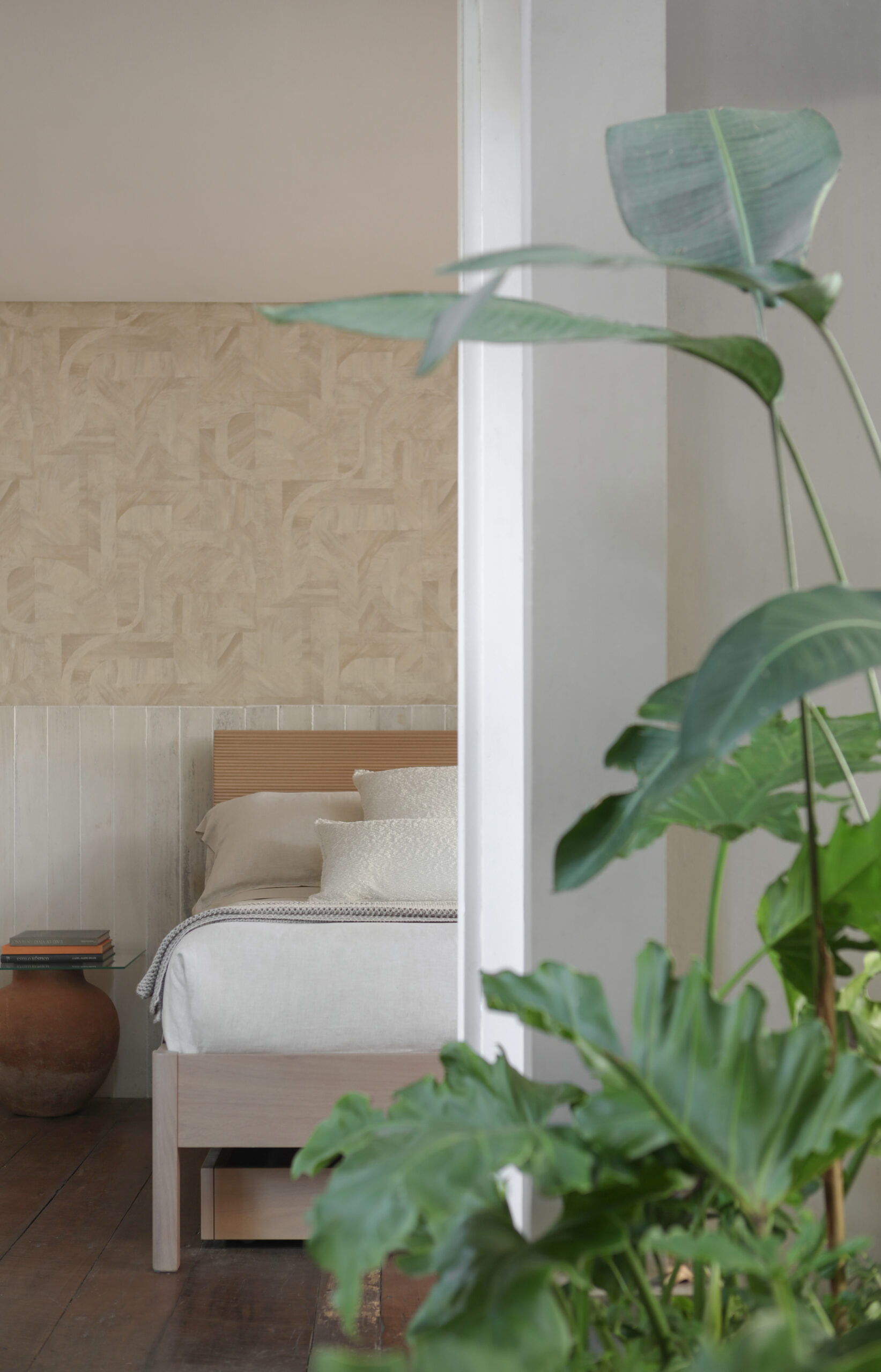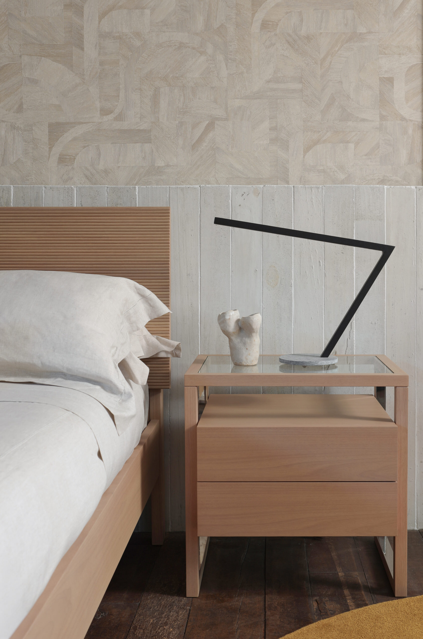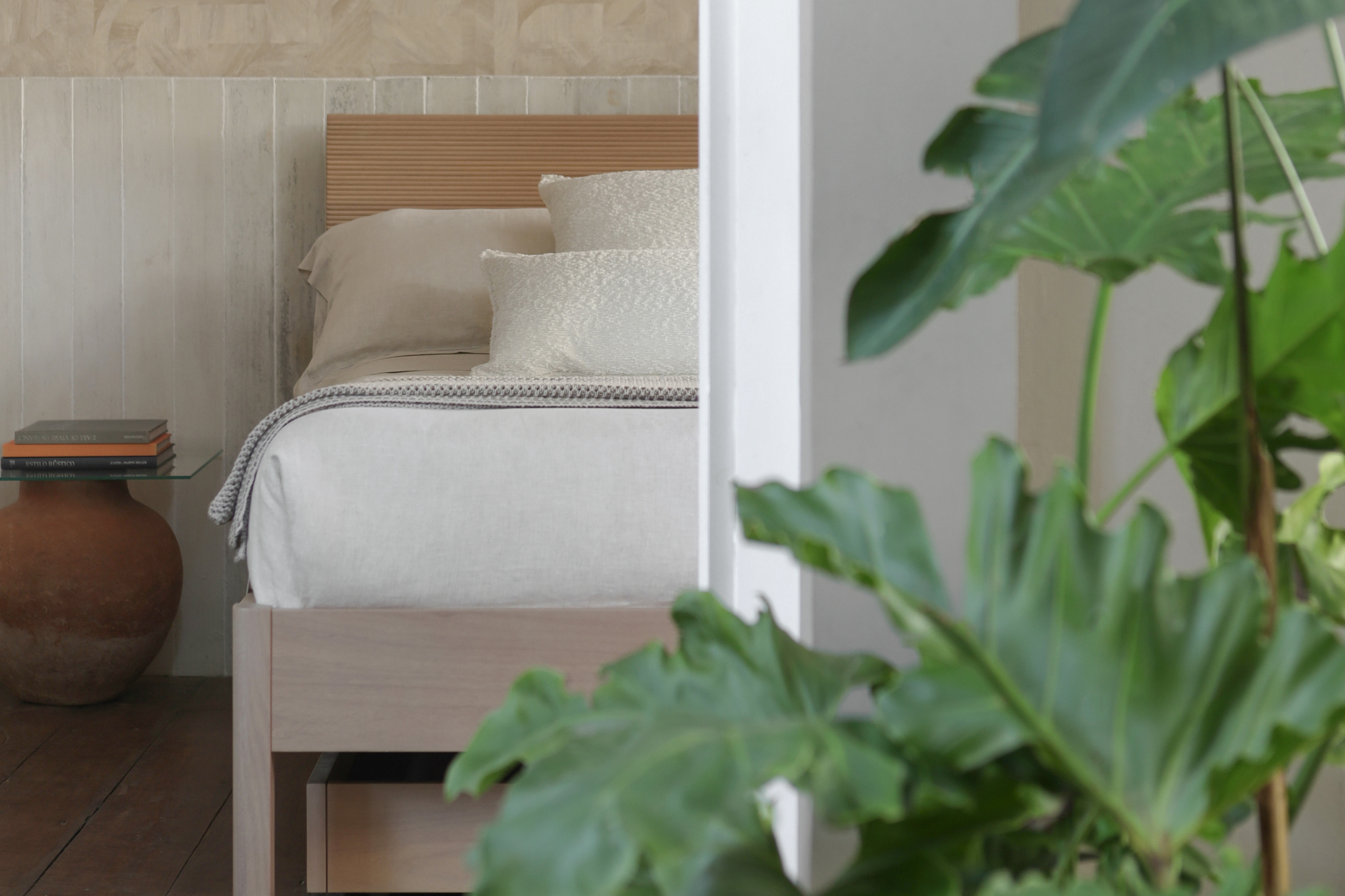 O refúgio de descanso é uma ode ao design moderno e cosmopolita, onde a madeira maciça se desdobra em um ritmo constante, evocando a beleza exuberante das nossas paisagens. Ao lado, o mobiliário traz detalhes sutis em metal que iluminam a composição com um toque de elegância contemporânea.