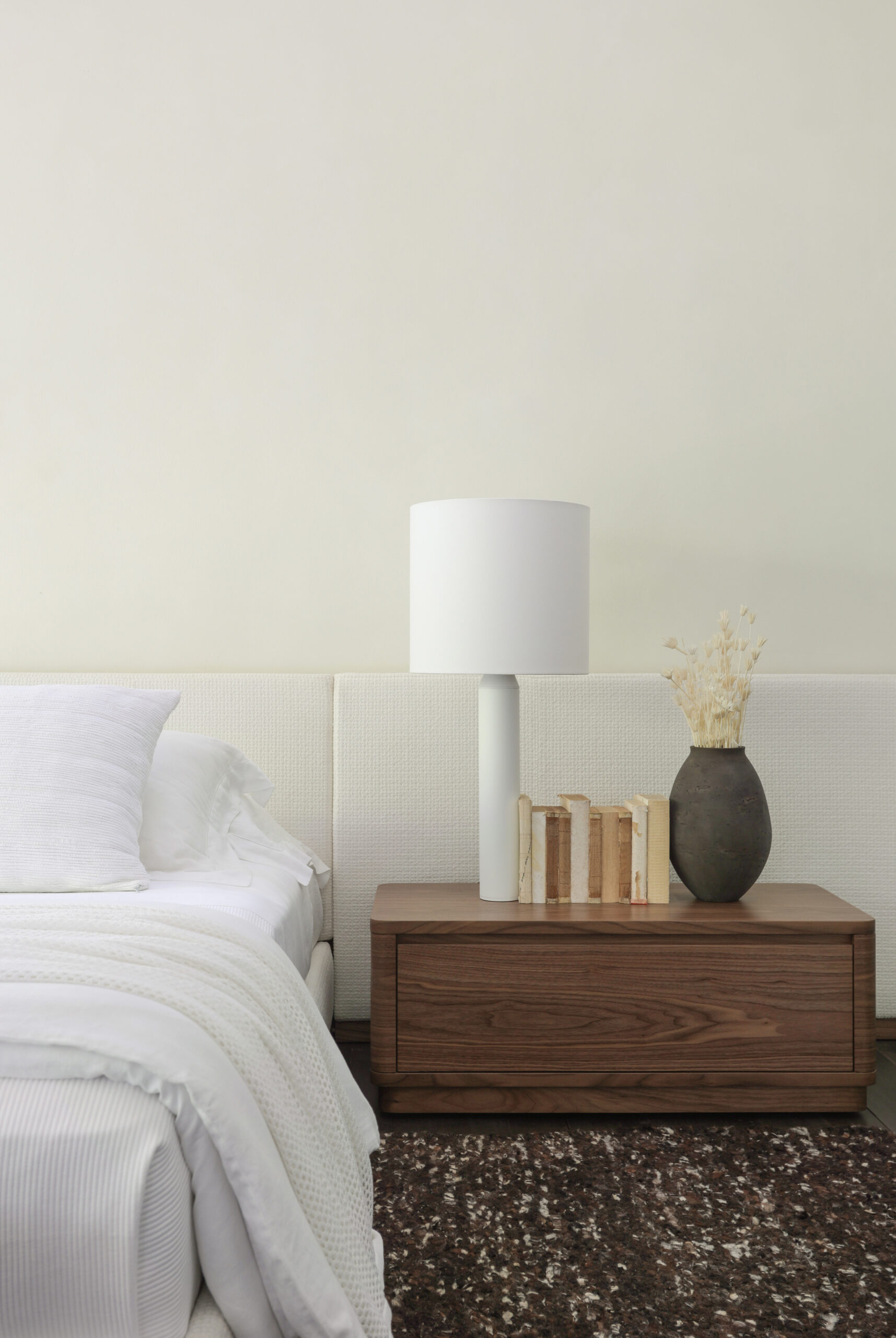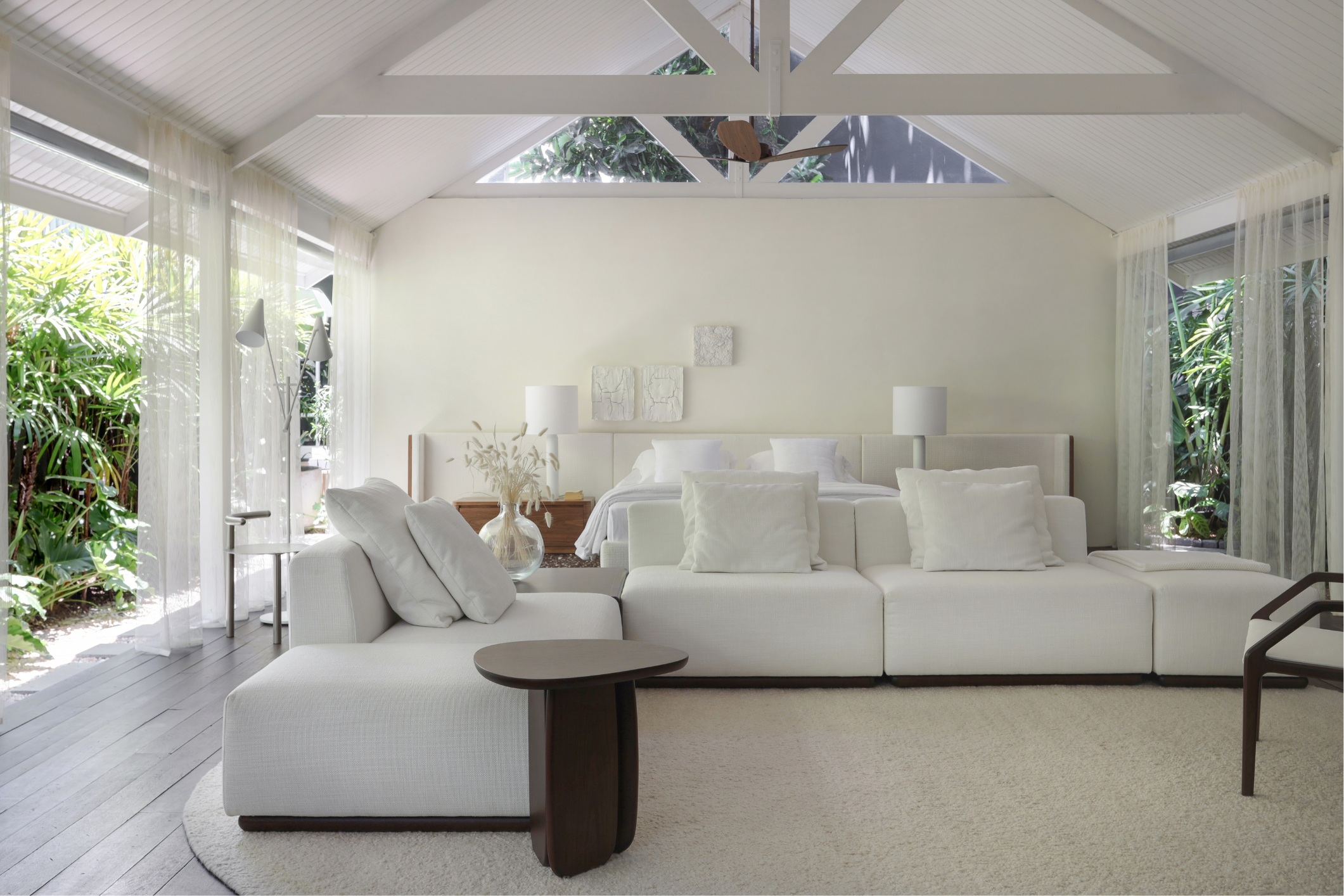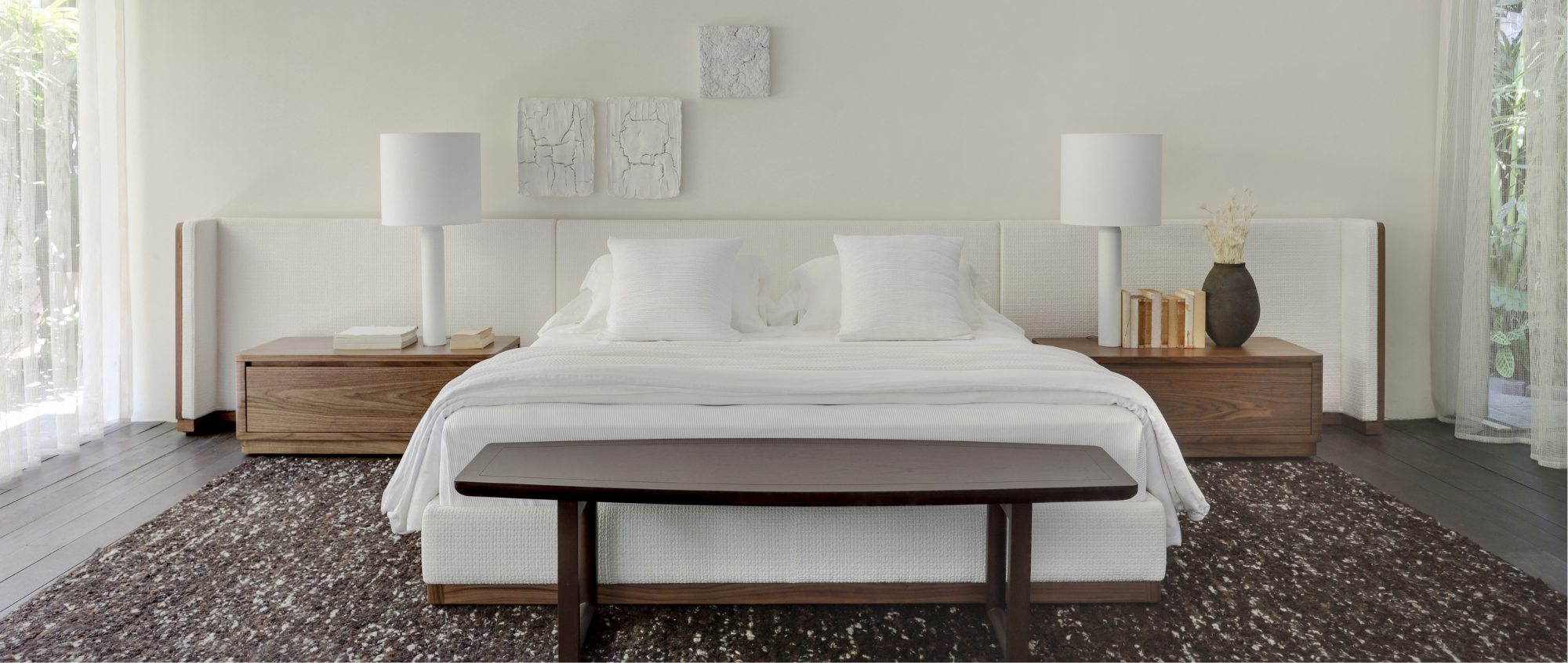 Texturas naturais, formas suaves e proporções equilibradas criam uma composição silenciosa, onde cada elemento tem propósito. Não há ruído, apenas continuidade. O espaço convida a permanecer, a observar a passagem da luz, a perceber os materiais, a sentir o tempo.
